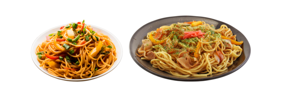 Dual Variation Schezwan Hakka Noodles with Paneer Collection, Isolated on Transparent Background.