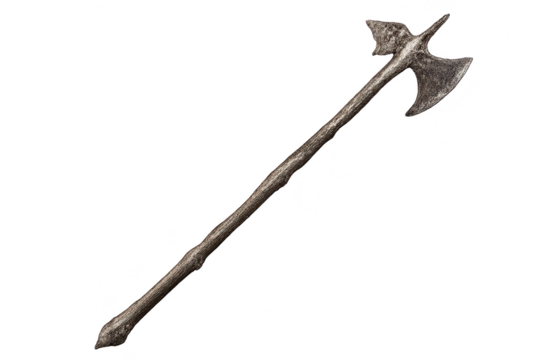 Isolated Medieval Halberd with Intricate Metal Details