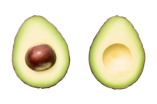 Ripe avocado sliced in half on transparent background