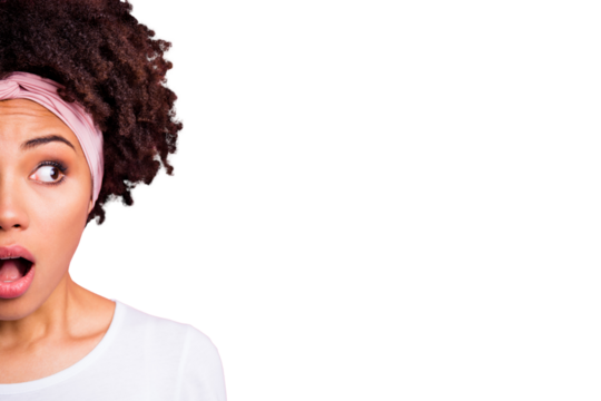 Diversity concept. Banner of half face woman, african and caucasian females on isolated transparent background