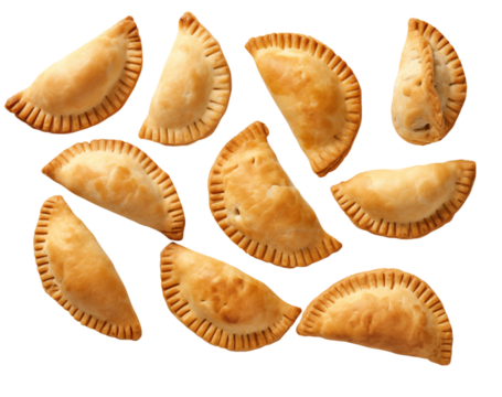 Baked empanada isolated on transparent background with golden brown crust and crispy texture