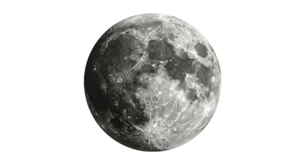 Digital illustration of detailed moon on transparent background