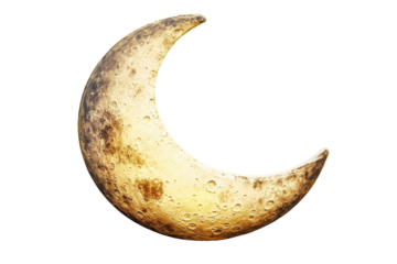Golden crescent moon isolated on transparent background. Moon isolated on white background.