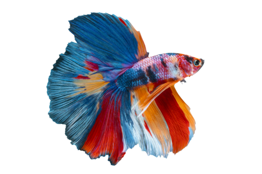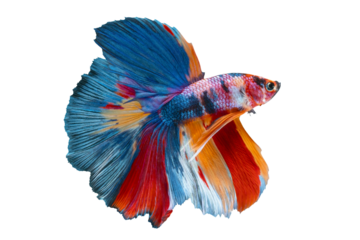 Muti-color siamese betta fish or splendens fighting fish in thailand on transparent background.