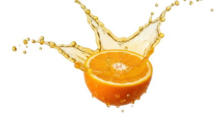 Vibrant orange slice with abstract blue splash on transparent