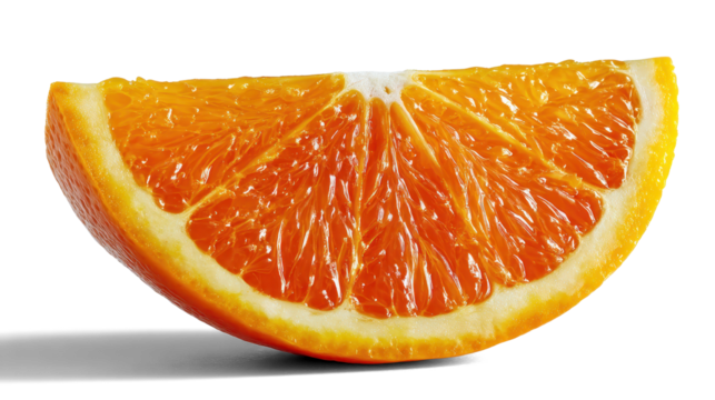 Close up of a juicy orange slice with vibrant orange pulp and white pith fruit citrus, Isolated On Transparent Background, Png Cut Out