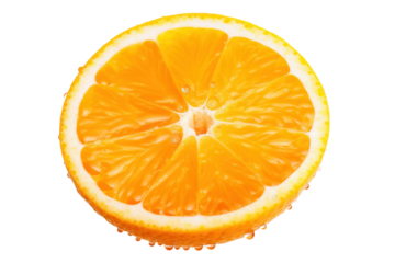 A close-up of a freshly cut orange showing the juicy interior and rich color, isolated on white background
