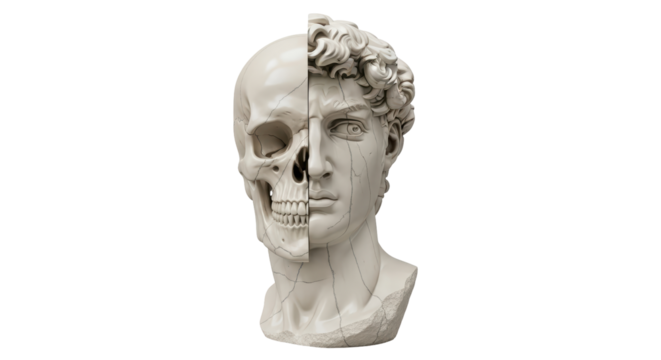 Half skull half human mask isolated on transparent background