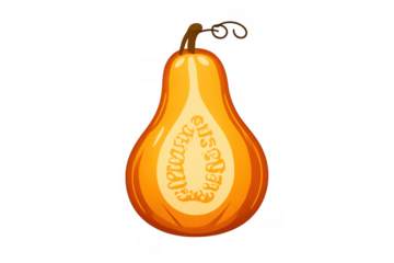 Half cut butternut squash illustration with seeds. Autumn vegetable, cooking ingredient, and healthy eating symbol