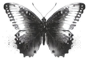 PNG Monochrome butterfly with halftone effect
