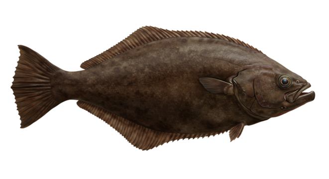 Detailed Image of a Pacific Halibut Against a Plain transparent background