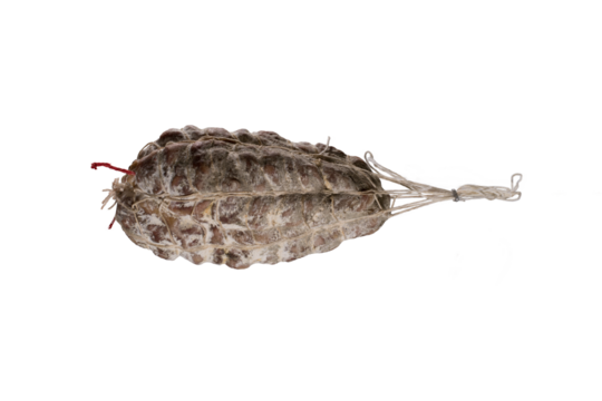 Jésus de Lyon, a dry pork sausage shaped like a pear, is a hallmark of Lyon's charcuterie and gastronomy. Transparent or white background
