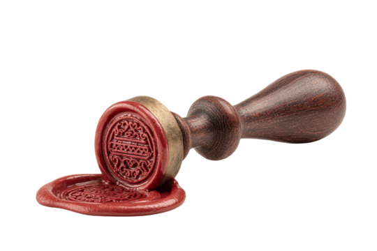 PNG Vintage wooden seal stamp with red wax and ornate design