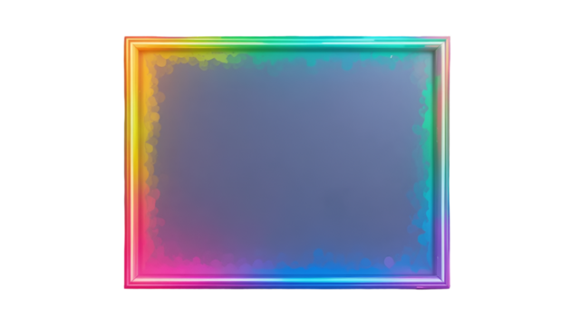 Vibrant rainbow frame with glowing neon lights on black background