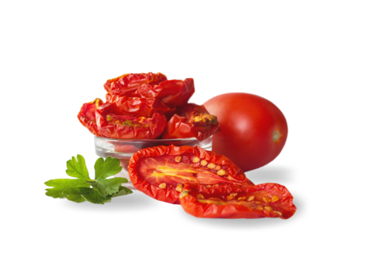 Dried or Sundried tomato halves with herbs and garlic  isolated png