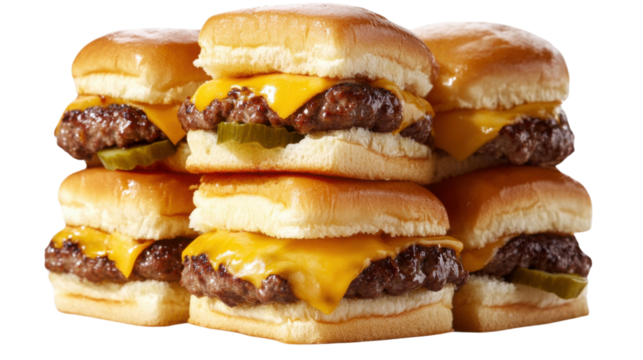 Delicious cheeseburger with melted cheese dripping on a plate with transparent background