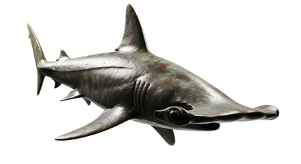 Hammerhead shark bronze statue realistic view on transparent background predatory marine animal from sea ocean with head hammer isolated
