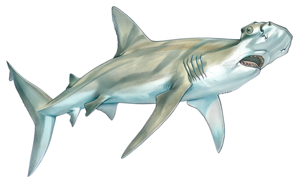 Hammerhead shark swimming through ocean water predator under sea aquatic animal isolated on transparent background realistic illustration