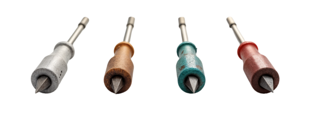 A set of four different colored screwdrivers