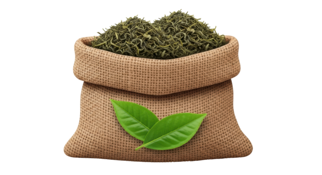 Isolated Bag of Dried Green Tea Leaves