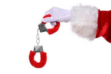 Arrest, handcuffs and crime with hands of woman on transparent background for law, prisoner and illegal. Guilty, jail and security with person in chains isolated on png for thief, criminal or justice