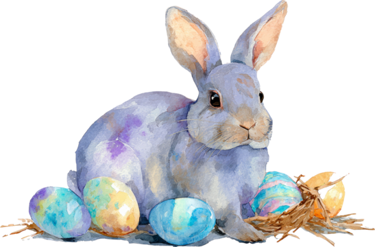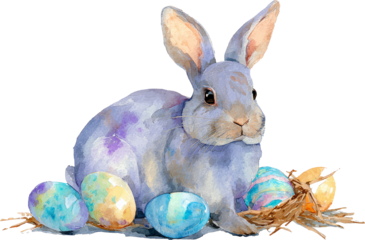 Watercolor rabbit Easter egg spring holiday cute animal pastel color illustration art