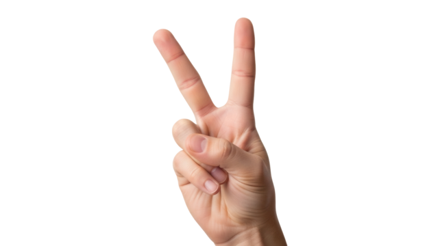 Isolated hand gesturing peace or victory sign, showing two fingers extended upward