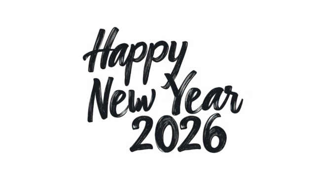 Happy new year 2026 lettering isolated on transparent background for holiday card