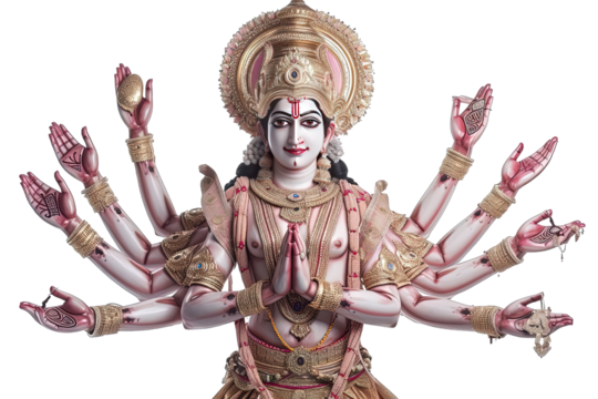 Set of intricately carved wooden temple doors isolated on transparent background.