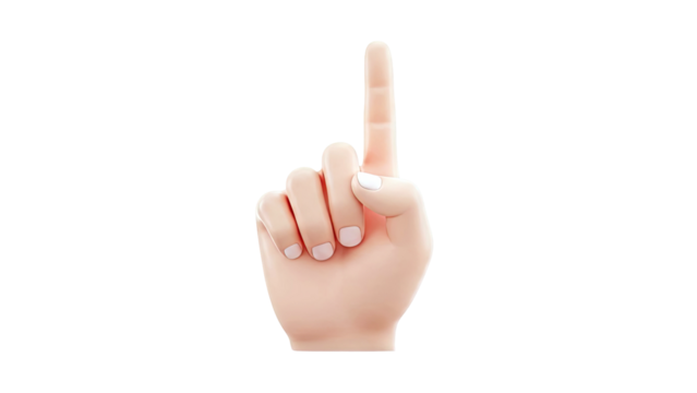 Isolated human hand pointing upwards with index finger on white background. png, Single finger pointing up from open hand, isolated on white.