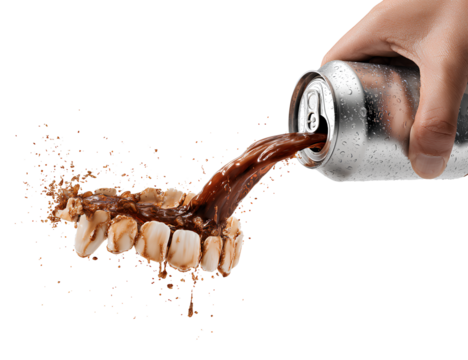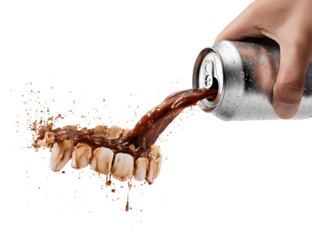 Hand holding white aluminium can, pouring beer or soda, cut out