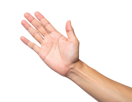 Open hand palm facing forward five fingers spread isolated on transparent background human skin gesture realistic detail communication body part neutral emotion