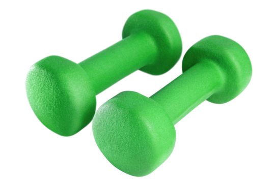 A pair of pink 1kg dumbbells crossed, symbolizing fitness and strength training, isolated on white isolated on transparent background