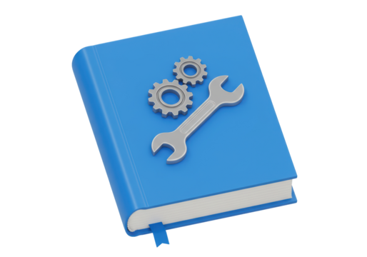 Isolated Blue Book with Wrench and Gears, Repair Manual Concept