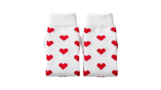 Pair of white baby socks with red heart pattern isolated on transparent background tshirt design