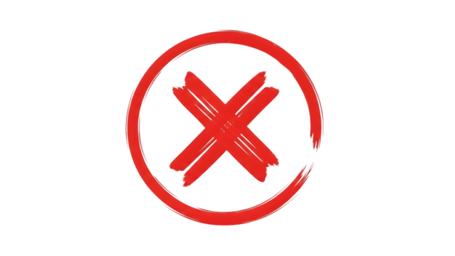 Hand drawn red cross mark symbol on a black background representing rejection or error