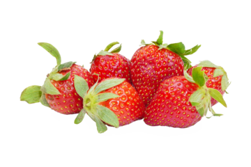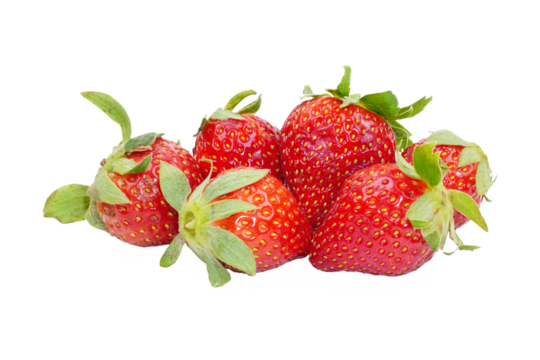 Strawberries without background. Fresh and juicy red strawberry. Strawberries with leaves isolated.