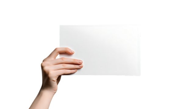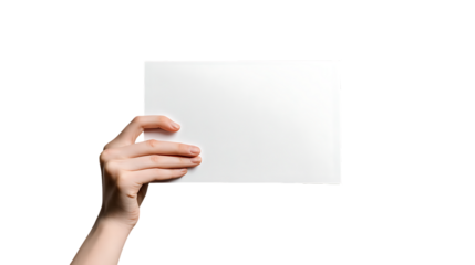Hand Holding Blank White Card Isolated on Transparent Background