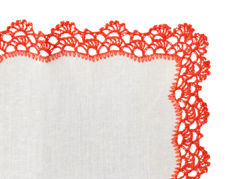 white cotton handkerchief with handmade lace, isolated