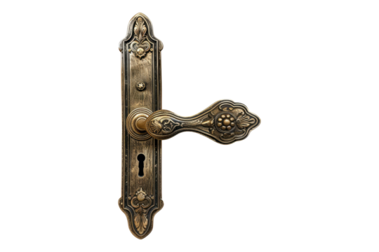 A sleek ornate silver handle gleaming with possibility hinting at undiscovered spaces and on transparent background