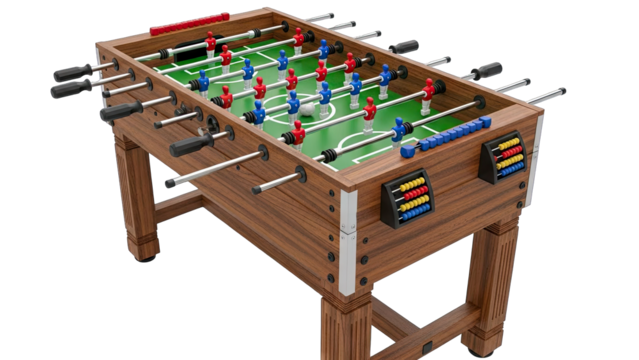 Foosball Table with Players and Ball on White Background