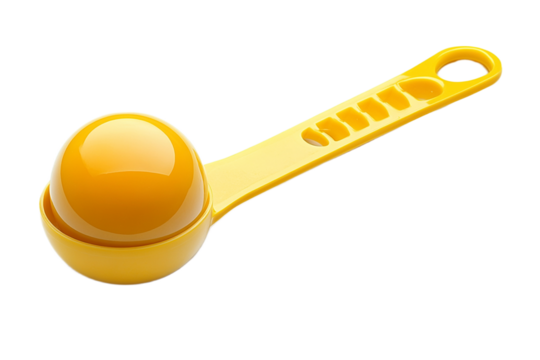 Bright yellow melon baller with melon ball, isolated on transparent background