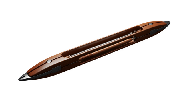 Wooden weaving shuttle isolated on transparent background for textile craft