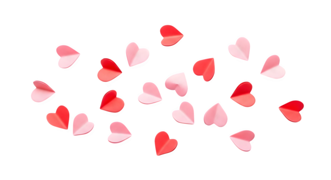 Scattered Paper Hearts in Pink and Red Shades.