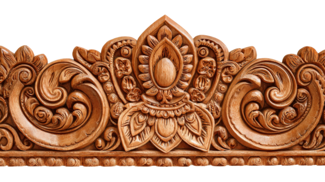 Woodworking Art: Detailed woodworking art with intricate carvings and smooth wood finishes, isolated on a Transparent background, PNG file.