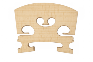 Maple violin bridge against transparent backdrop, supporting precise string vibration and musical resonance