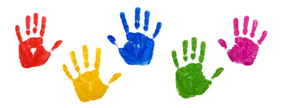Colorful handprints on transparent background illustrating creativity and art