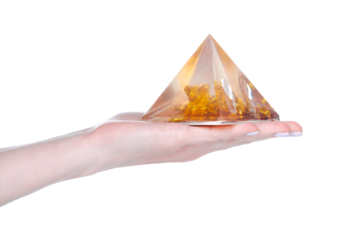 Closeup hand Santa holding and showing yellow star magic wand from application paper on transparent background