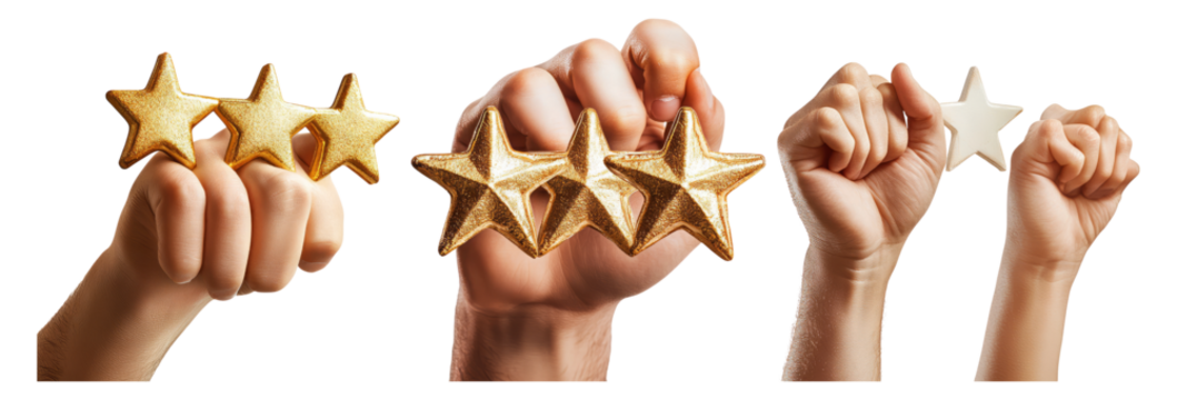 Hands Holding Golden Stars and Empty Star Trophy in Different Positions