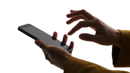 User interacting with smartphone on transparent background